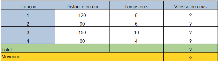 - Pour aller plus loin : En utilisant le tableur, convertir la vitesse exprimée en cm/s en km/h
