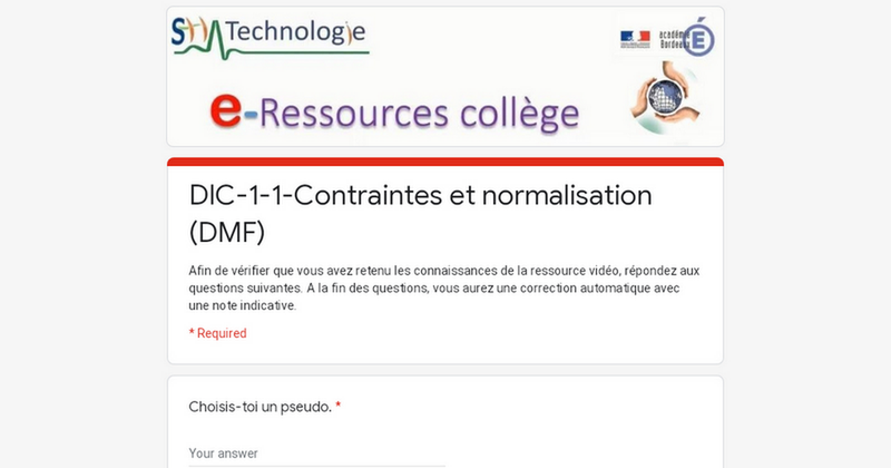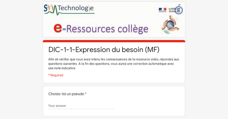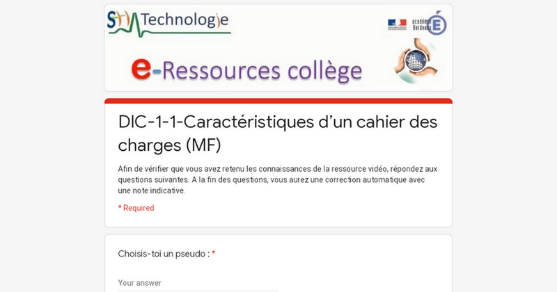 Afin de vérifier que vous avez retenu les connaissances de la ressource vidéo, répondez aux questions suivantes. A la fin des questions, vous aurez une correction automatique avec une note indicative.